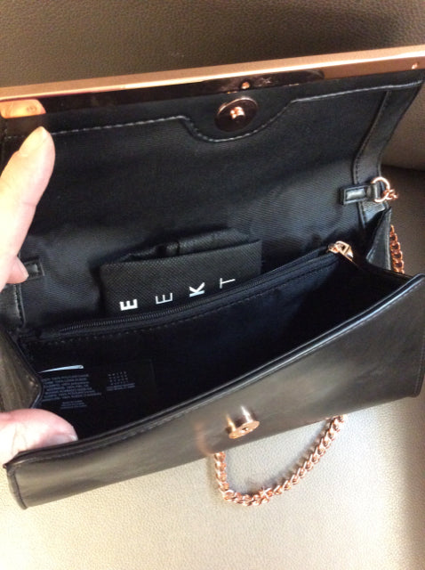 Crossbody/Clutch Black Floral Embroidered Rose Gold Chain w/dust bag