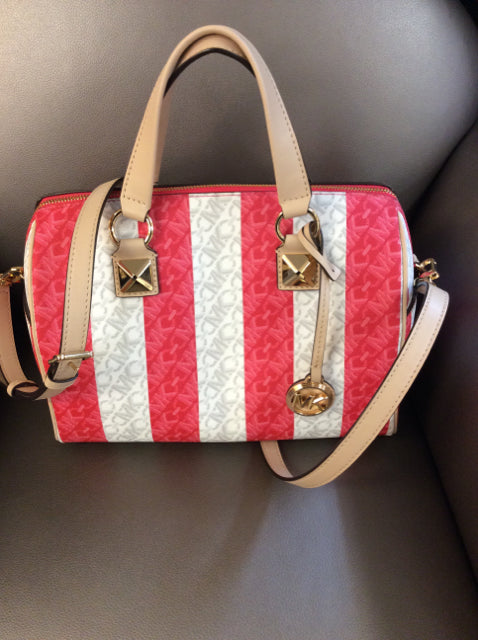 NWT-NEW Red & White Striped Designer Satchel Handbag – Gold Tone Accents
